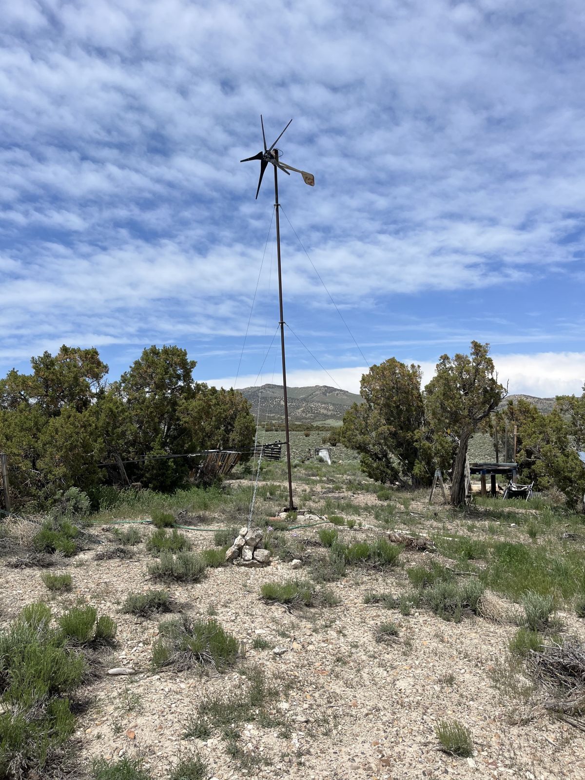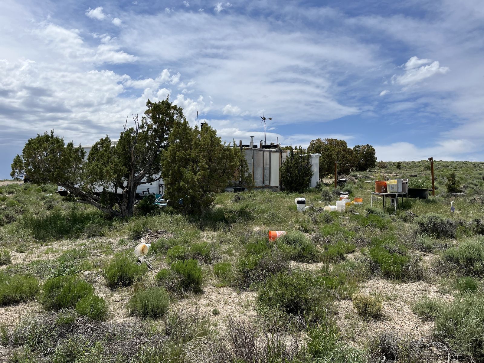 Off grid living on 20 acres south of Montello in the Gamble District area. Property is set up with power through solar panels and a wind mill. Includes 1 building that was used as a home and an additional office trailer. 4WD, high clearance vehicle recommended to access property on a dirt road for about 7 miles. No water or septic. Boarders BLM and has great views of mountains and valleys.